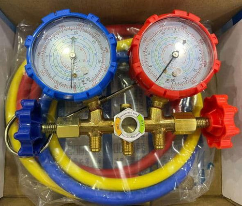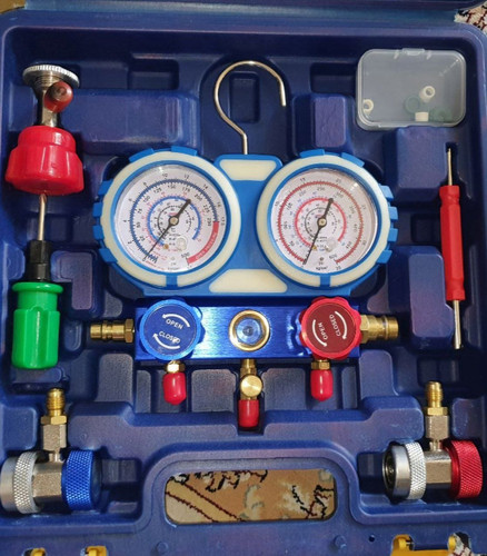 گیج منیفولد دوقلو شارژ گاز آبی فشار پایین و قرمز فشار بالا
